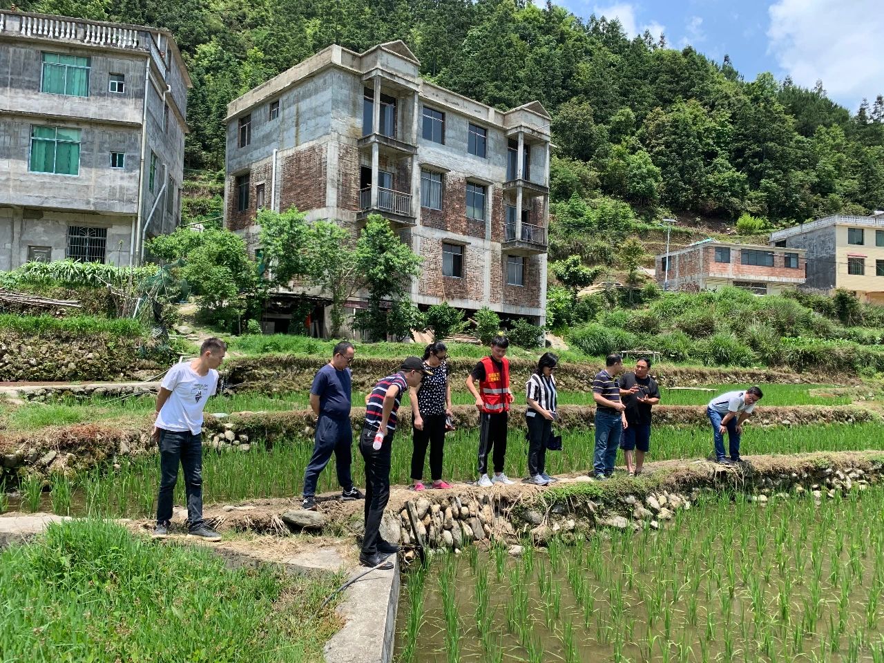工作小组来到红水乡稻渔综合种养示范园,实地查看禾花鲤养殖稻田、食用菌养殖区,听取良双村在开展产业脱贫中的需求和困难,详细了解贫困户种植、销售农作物的情况,指导协调解决其在生产生活中遇到的困难和问题。