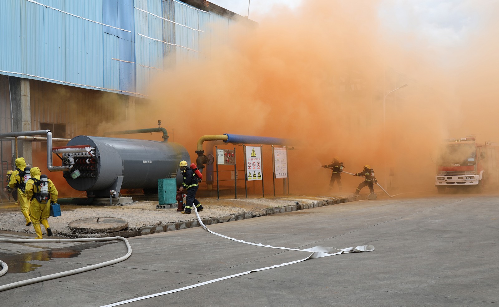 早上十点左右,应急救援演练正式开始。此次应急演练采取“预设演练背景、现场实战演练”的方式实施开展,各演练小组明确工作职责,按照既定方案开展报警报告、应急处置、启动应急预案、组织救援车辆进场、疏散人员、救治伤员等各项程序。整个演练过程紧张有序,演练活动如期完成。